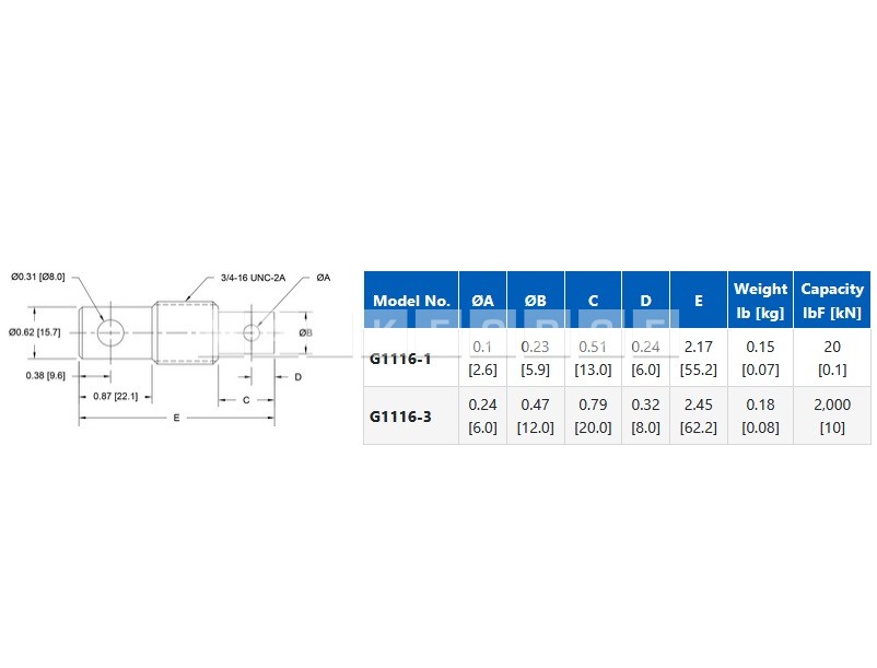 Technická data k porovnání Adaptér s očkovými konci, kompatibilní s Instron, 12,0mm, G1116-3