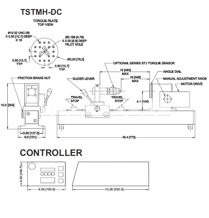 Pokročilé motorizované zařízení k testování momentu model TSTMH-DCE nabízí všechny mechanické specifikace motorizovaného zkušebního zařízení TSTMHE, včetně kapacity 11,3 Nm, všestranné modulární konstrukce, rychlého připevnění a uvolnění vzorků, desky na montáž přípravku, krokového motoru, jenž bráni změně rychlosti při zatížení aj.