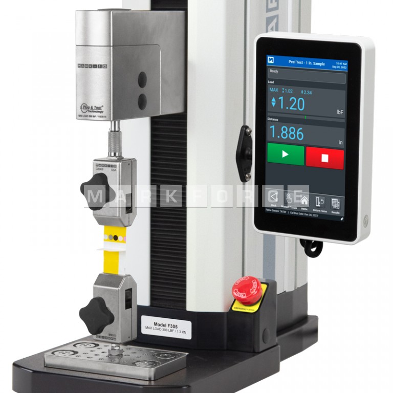 Zkušební stojany s integrovaným siloměrem série F jsou navrženy pro aplikace testování síly až do kapacity 6,7 kN (1500 lbF). Vyberte si ze široké škály kapacit snímačů síly a rozsáhlé řady úchopů a přípravků. Nastavujte a spusťte testy, exportujte výsledky a vytvářejte protokoly prostřednictvím integrovaného, snadno použitelného rozhraní s dotykovou obrazovkou – není potřeba počítač ani siloměr. Pro specifické potřeby spusťte tester z počítače s vlastní aplikací s využitím knihovny sériových příkazů EasyMESUR®.
