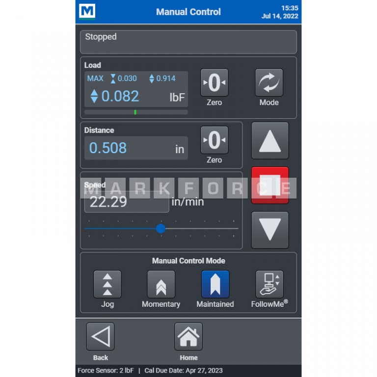 Zkušební stojany s integrovaným siloměrem série F jsou navrženy pro aplikace testování síly až do kapacity 6,7 kN (1500 lbF). Vyberte si ze široké škály kapacit snímačů síly a rozsáhlé řady úchopů a přípravků. Nastavujte a spusťte testy, exportujte výsledky a vytvářejte protokoly prostřednictvím integrovaného, snadno použitelného rozhraní s dotykovou obrazovkou – není potřeba počítač ani siloměr. Pro specifické potřeby spusťte tester z počítače s vlastní aplikací s využitím knihovny sériových příkazů EasyMESUR®.